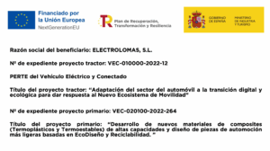 Somos parte del PERTE VEC1 “light2move” liderado por Faurecia, en uno de los 9 proyectos principales que tiene el proyecto tractor, junto con Industrias Alegre, para el desarrollo de componentes electrónicos ligeros y eficientes que utilicen la tecnología de la plastrónica para vehículos eléctricos y conectados.